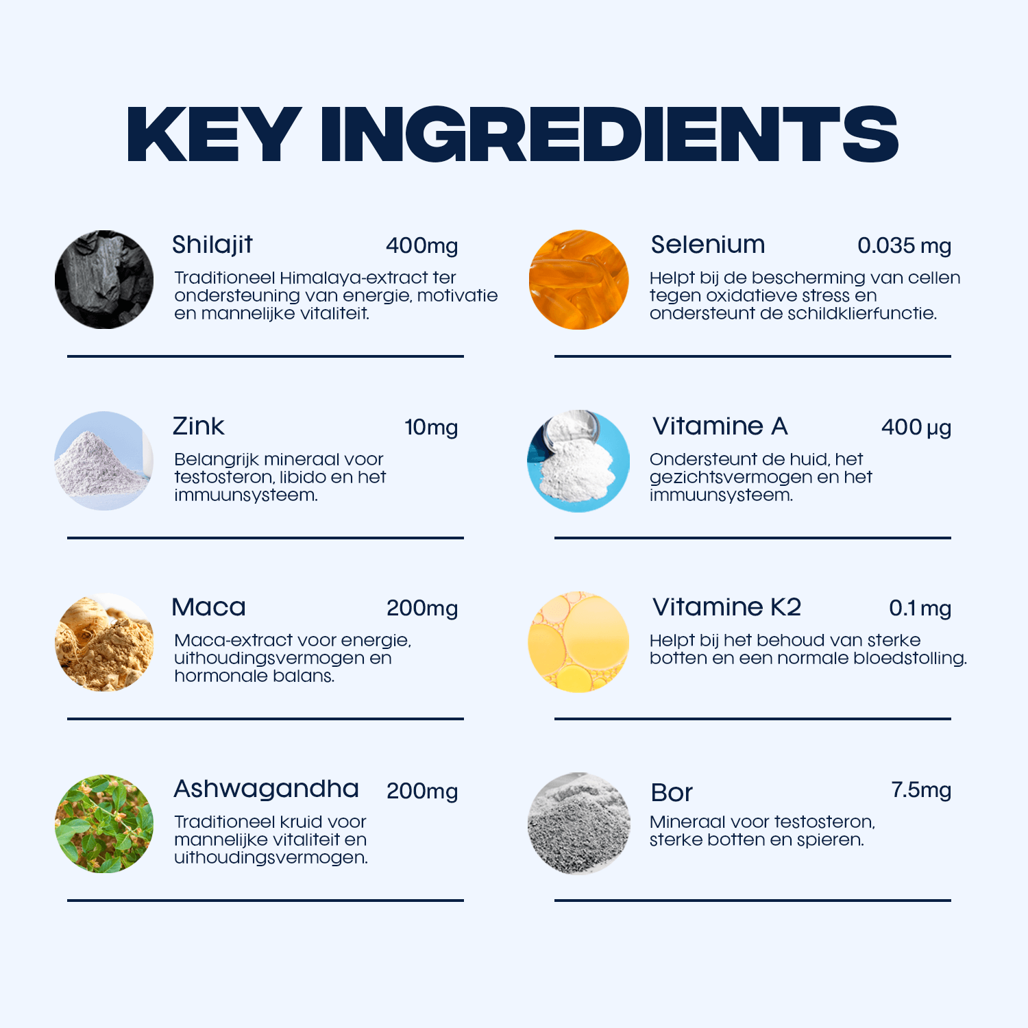 Ingrediënten zoals zink dragen bij aan het behoud van normale testosteronspiegels. Plantenextracten zoals ashwagandha worden in verschillende studies onderzocht op hun rol binnen een gezonde levensstijl.